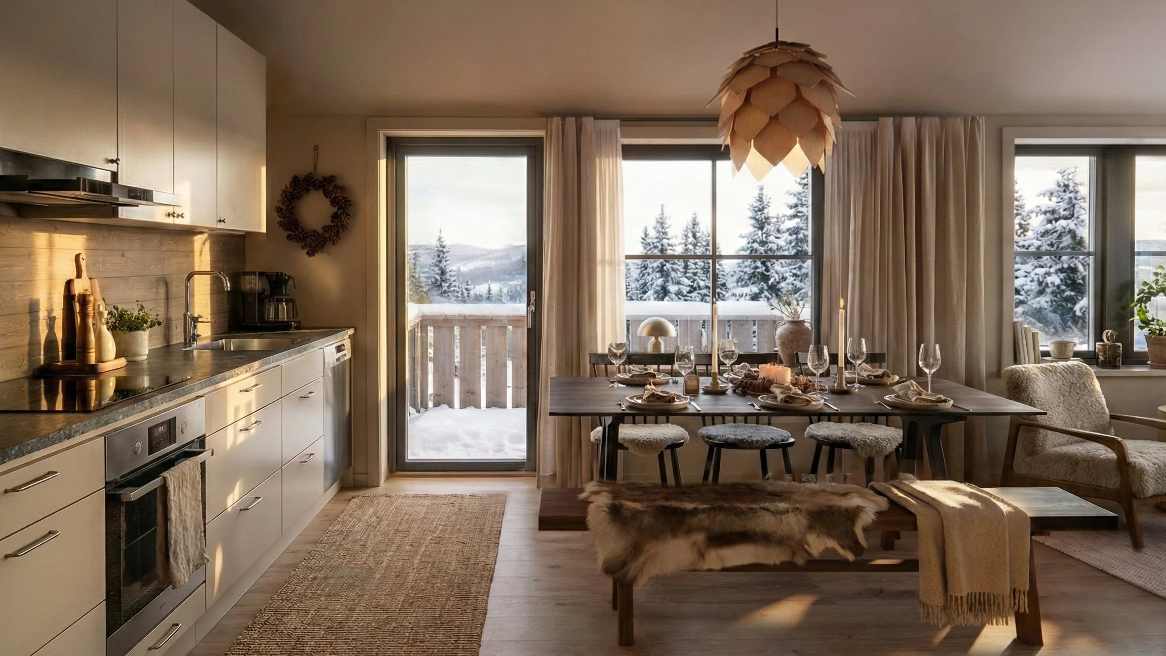 Vildhem Branäs är ett genomtänkt boende där arkitektur, material och planlösningar samspelar med livet på berget. Bostäderna är utformade med fokus på ljus, funktion och gemenskap, med planlösningar anpassade för skidlivet – från avkoppling efter långa dagar i backen till sociala måltider och tid tillsammans.